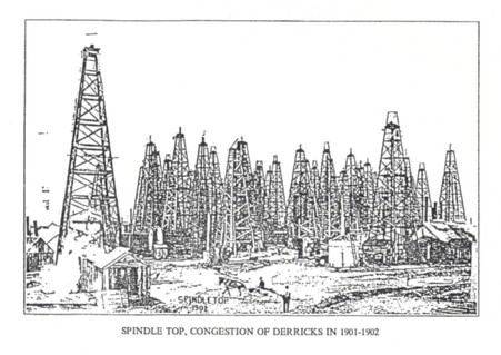 Spindle Top, congestion of derrics in 1901-1902 (photo from [McBeth])