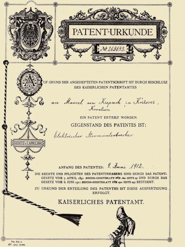 Marcel pl. Kiepach (1894-1915) was probably the youngest inventor that Croatia ever had. He patented his first inventions in several European countries already at the age of 16, mostly in the field of electrical engineering. His inventions have been patented in France, Germany, England, Switzeralnd and in the USA.