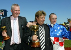 Mr. Tony Santic is in the middle, Glen Boss on the right (Makybe Diva missing),