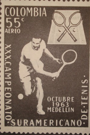 Dragutin Mitic (1917) was a distinguished Croatian tennis player. In 1938 Simone Mathieu (France) and Mitic became the Roland Garros mixed double champions. In 1939, playing with Franjo Puncec, he defeated the German Davis Cup team at the European zone finals in Zagreb. From 1954 until 1965 he worked as a tennis professional in Bogota, capital of Columbia. It is interesting that his photo appears on a Colombia stamp, see below. In 1965 he immigrated to the USA.