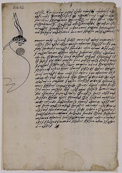 Letter to Pavasovich, serdar of Shibenik and Skradin kapitenias (provinces in Croatia [Šibenik and Skradin are Croatian towns on the Adriatic Sea; D.Ž.). 1135 A.H./1722 – 1723 A.D. 1 f., 305 x 209 mm, paper. Coll. 67. Berchich. No. 62.