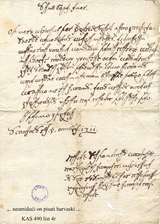 Austrian royal envoy Jerolim Zadranin writes a letter in Croatian Cyrillic on 11 February 1543 from Constantinople to Croatian Ban (governer) Baćan and other Croatian dignitaries to be in peace with neighbouring Turks (Carski poslanik Jerolim Zadranin piše hrvatskom ćirilicom banu hrvatskom Baćanu i ostalim poglavarima 11. veljače 1543. u Carigradu, da budu u miru sa susjednim Turcima:)