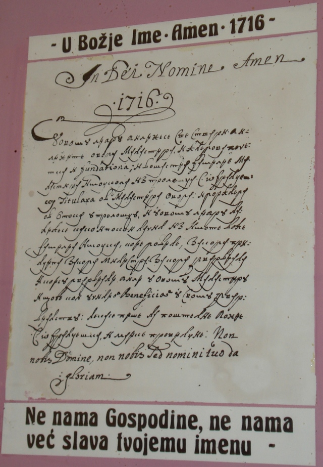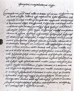 In the archives of the Nin Bishopric (Nin is a town at the Croatian coast, not far from the city of Zadar) the following document dating from 1723 has been discovered, written in Croatian Cyrillic Script: