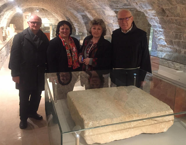 D.Ž., Vanja Gabrić, Mirna Lipovac and fra Andrija Nikić by the Humac Tablet.