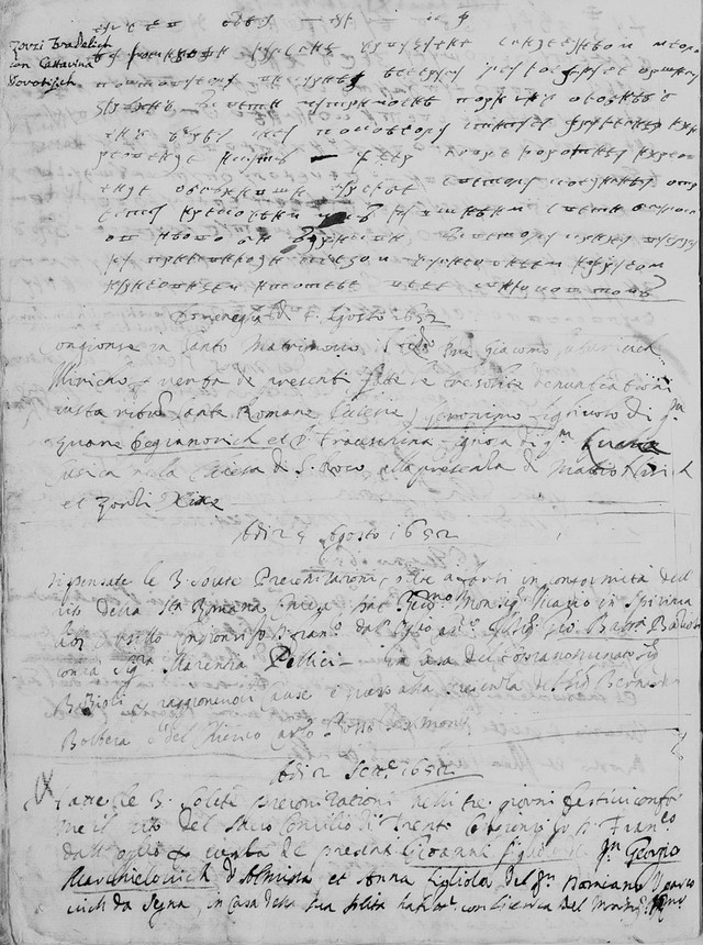 From a book of registers of the Split Cathedral, containing inscriptions in Croatian Cyrillic, 1652