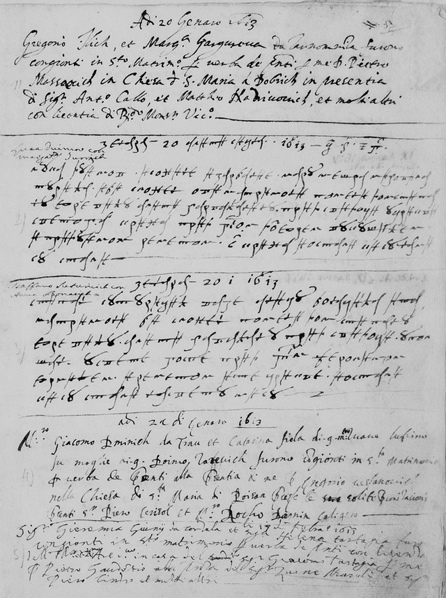 From a book of registers of the Split Cathedral, containing inscriptions in Croatian Cyrillic, 1613