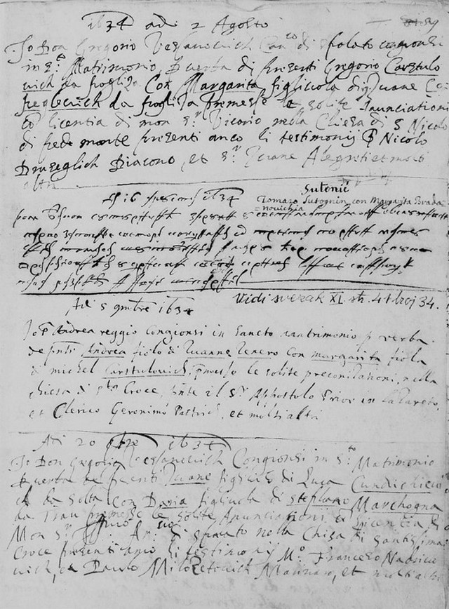From a book of registers of the Split Cathedral, containing inscriptions in Croatian Cyrillic, 1634