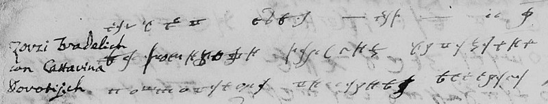 In the middle: Don Gargo Burmetić od Zadra (from Zadar, inscribed in Glagolitic quickscript)