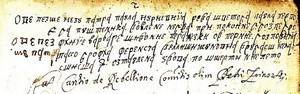 Croatian nobles were familiar not only with the Croatian Glagolitic Script, but also with Croatian Cyrillic. We can illustrate this with the following text signed by Petar Zrinski (1621-1671) outstanding Croatian statesman and writer. It is contained in the “Libar od Spominka” (Book of Remebrances) written by Katarina Zrinska (1625-1673).