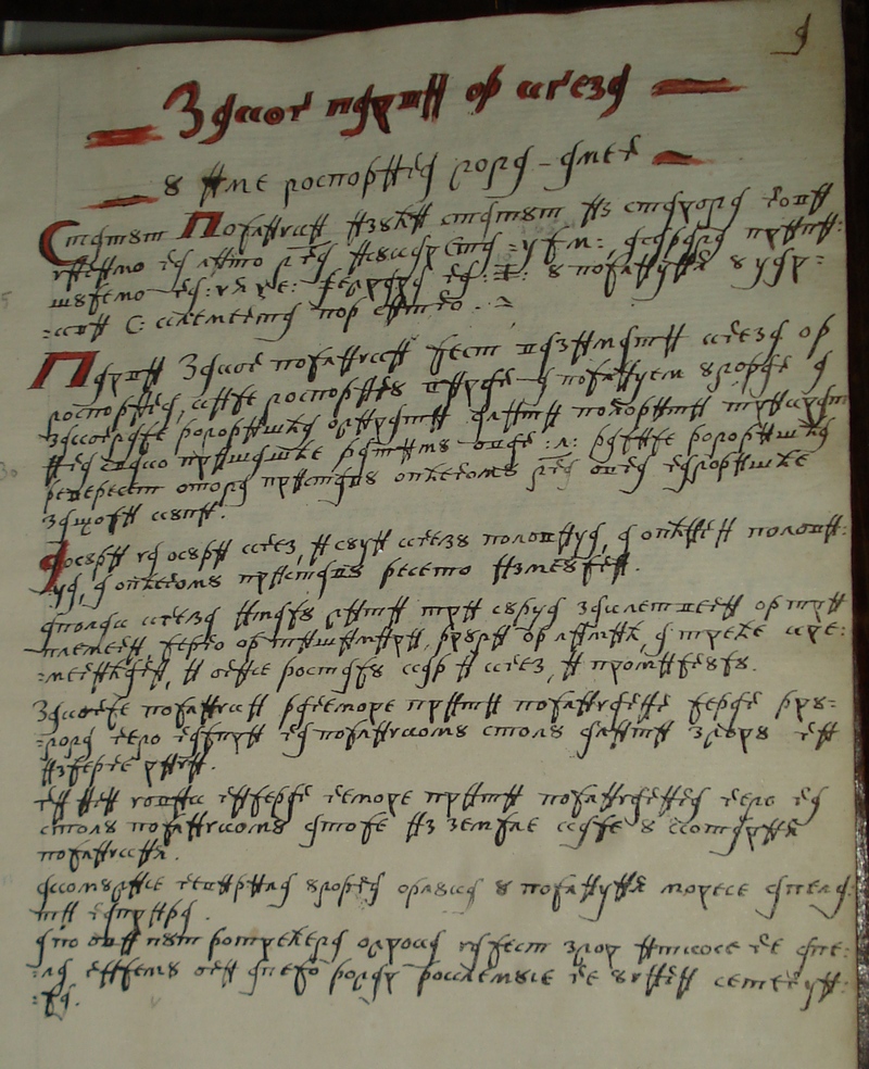 The Poljica statute, a famous Croatian Cyrillic legal document. This is a version from 1665, kept in the National and University Library in Zagreb. The oldest preserved version is from 1440., and it is known to have been based on even older manuscripts.