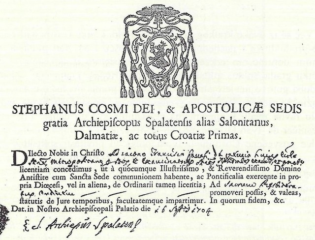 Stephan Cosmi, archbishop of Split, Salona, Dalmatia and primas of the whole of Croatia.