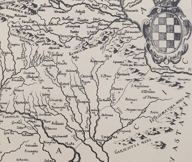 Croatian Coat of Arms on the map of Croatia by Stjepan Glavac (Stephan M. Glavach), 1673