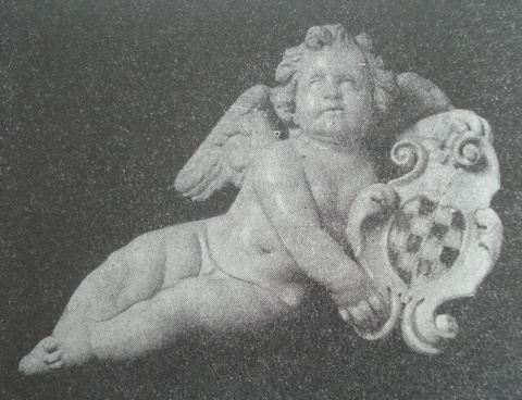 An angel with Croatian Coat of Arms, previously on the altar of St. Luke in the Zagreb Cathedral (from 1703)