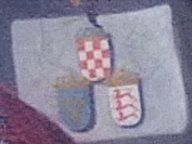representing coat of arms of the Kingdom of Croatia, Slavonia (on the right) and Dalmatia (on the left).