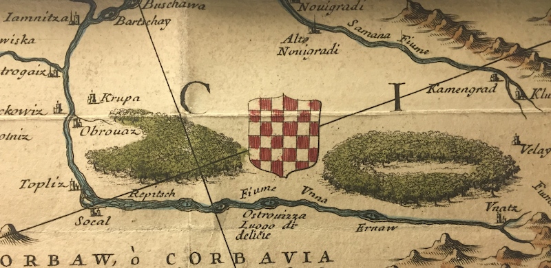 Two details from Regnum Croatiae, map of Croatian Kingdom by Johann van der Bruggen, Venice 1737