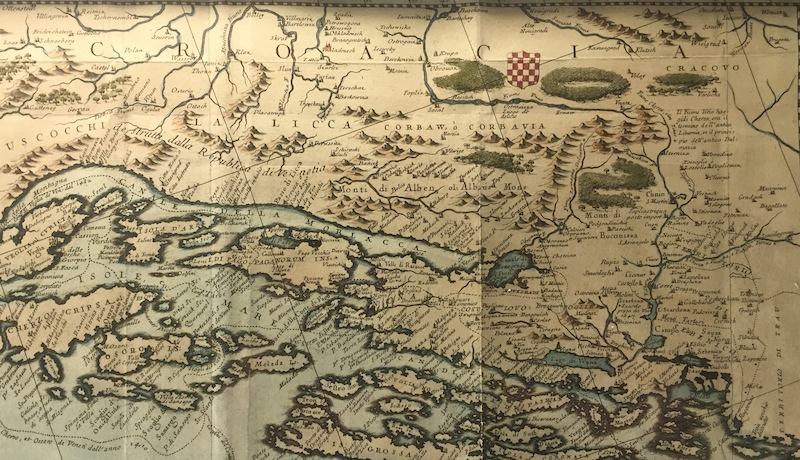 Croatian Coat of Arms on a map by Vicenzo Maria Coronelli, printed in Venice, 1697