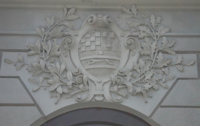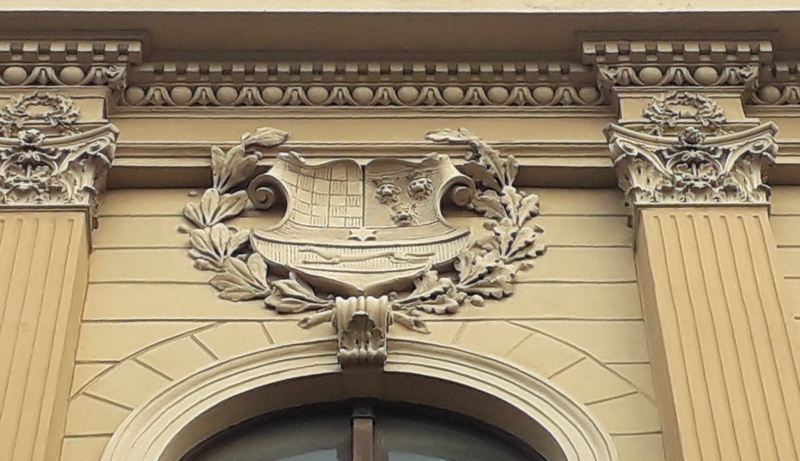 Croatian coat of arms above the main entrance of the Croatian National Theatre in Zagreb, 1895