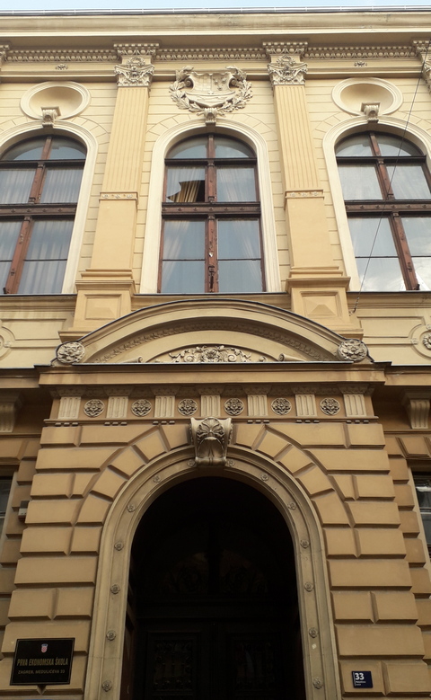 The main entrance to the First Economic School in Zagreb, Medulićeva 33.