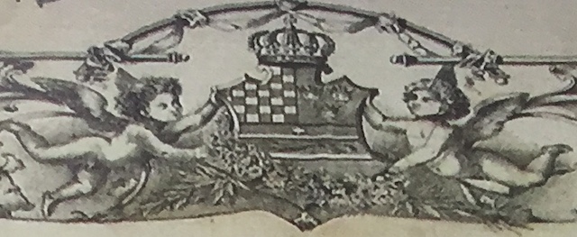 On the top, one can see the Coats of Arms of Slavonia, Dalmatia and Croatia.