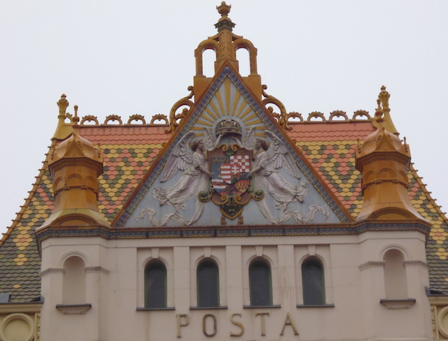 Croatian coat of Arms on a post office in Pecuh, Hunagry.