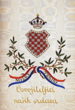 A bag from 1848, decorated with the crown and Croatian Coats of Arms, representing