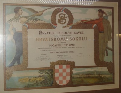 Diploma issued by the Union of Croatian Falcon Societies to the Crotian Falcon of Belovar, Zagreb 1906