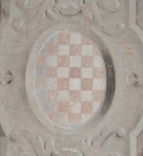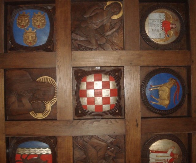 The round Croatian Coat of Arms in the church of St Philip and Jacob in Novi Vinodolski, with St. John the Baptist on it.
