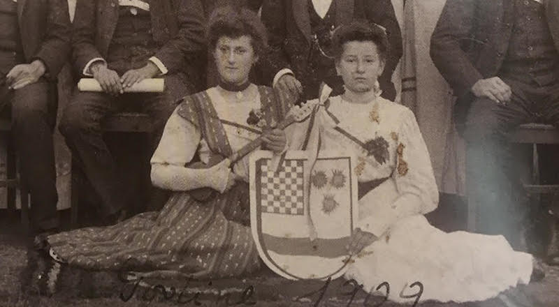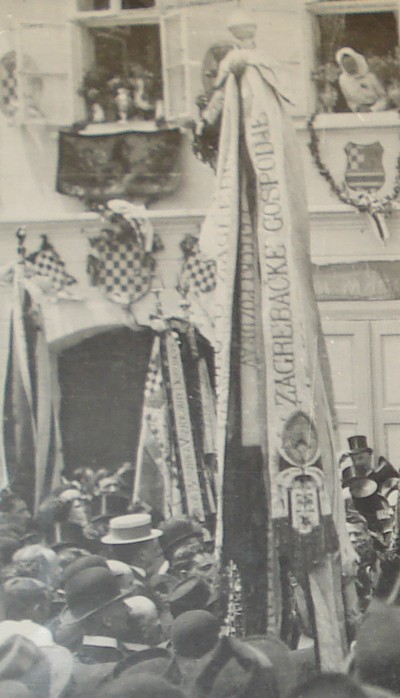 Zagreb, 1910. Notice the flag Zagrebacke gospodje – Zagreb Ladies.