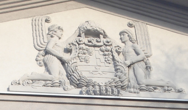Croatian coat of arms on the main building of the Croatian Railway, Zagreb, 1903, Mihanoviceva 12
