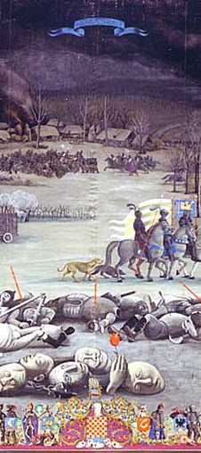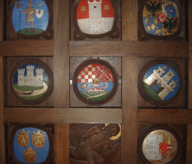 The round Croatian Coat of Arms in the church of St Philip and Jacob in Novi Vinodolski, with St. John the Baptist on it.