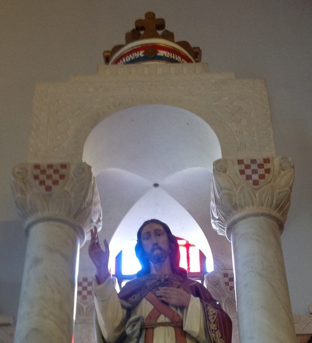 The votive altar of Sacred Heart of Jesus the King was carved by distinguished Croatian artist Mila Wod, thanks to donations of parisheners.