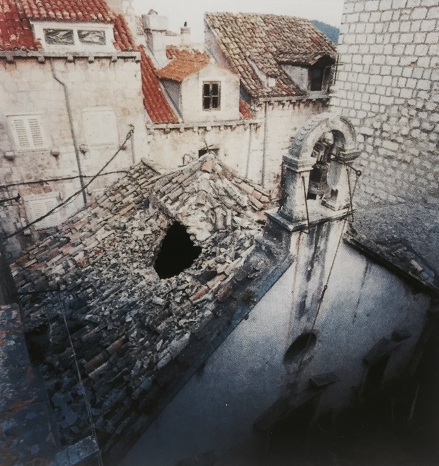 a wounded church in the City of Dubrovnik. Subsequently renovated.