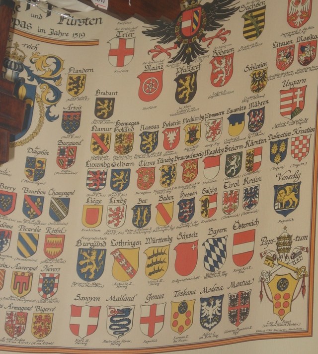 Croatian coats of arms can be seen on the ceiling of the Stadtrichter Zeller Haus (Herzog Friedrichstr. 35)