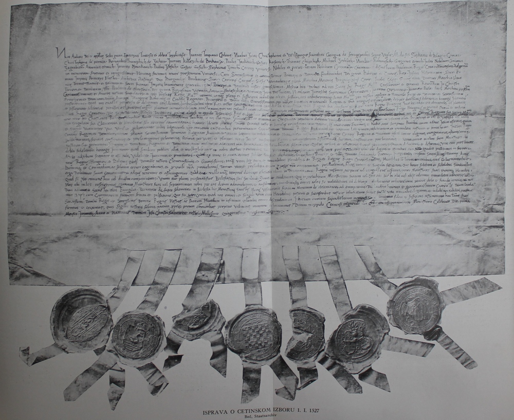 January 1st, 1527, Croatian legal document kept in the State Archive in Vienna (Staatsarchiv), with the first known official appearance of Croatian Coat of Arms.