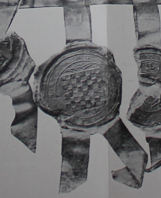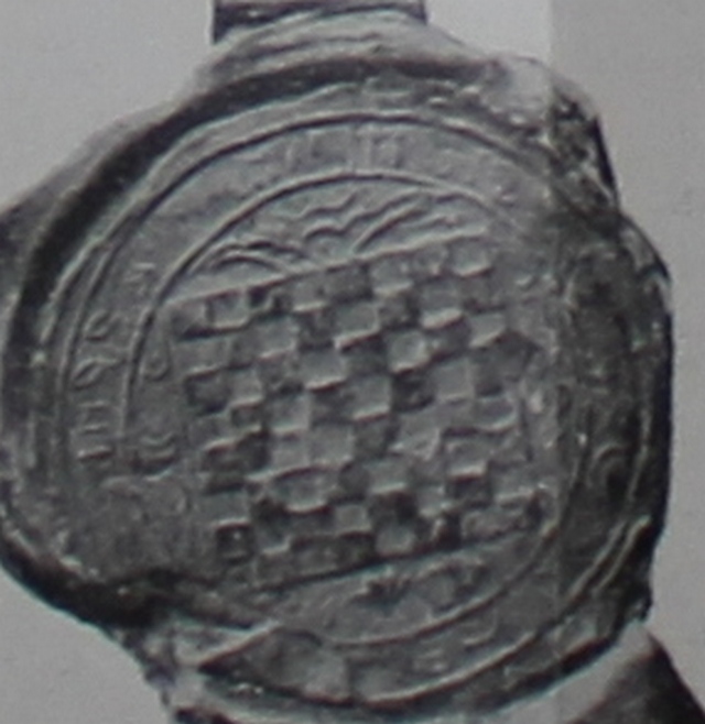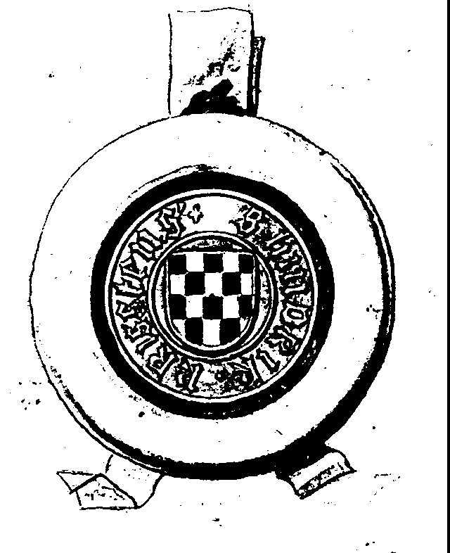 The coat of arms owned by the Swedish noble family Kristiernsson from Östergötland in Sweden. During the fifteenth century, this family served the Scandinavian king Erik VII of Pomerania and his governor in Östergötland, count Ivan VI. Anž Frankopan (in Sweden known as Johan Franke or Johan Vale). The central part of Kristiernsson’s seal corresponds to the traditional chequered Croatian coat of arms, known since the eleventh century. During the king Erik of Pomerania’s travel through Croatia on his way to the Holy Land, his followers and king’s shield-bearer Hindrik Kristiernsson made a longer break in Frankopan’s city of Senj. The coat of arms very similar to that of Kristiernsson’s, belonged to the noble family Perović from Senj. For more details see dr. Mladen Ibler (Denmark): THE CROATIAN COAT OF ARMS – FROM FRANKOPAN´S SENJ TO SWEDEN?