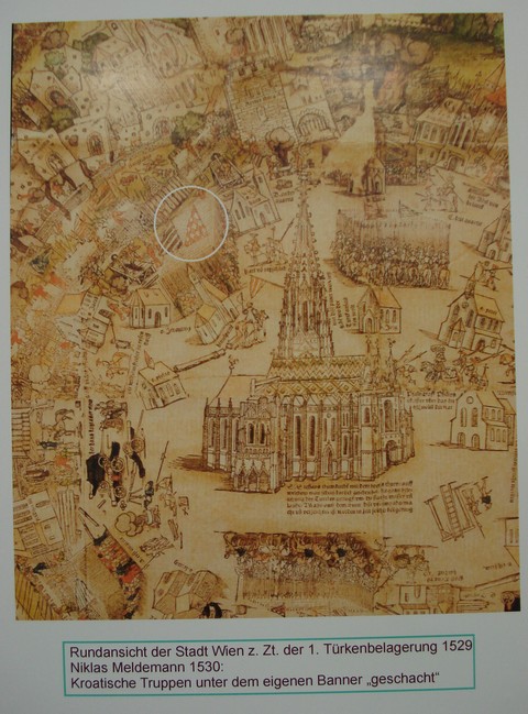 Croatian defensive forces under their Croatian flag in Vienna in 1529, during the first Turkish siege of the city.