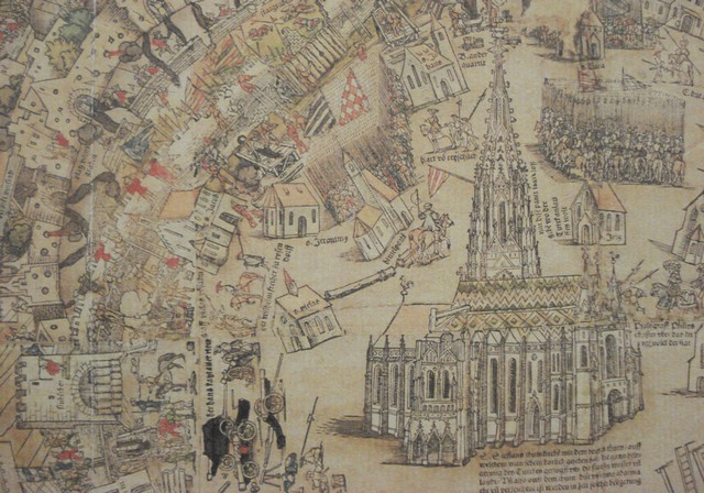 Vienna in 1529, during the first Turkish siege of the city. Stephanusdome, the famous Vienna Cathedral, is in the center.