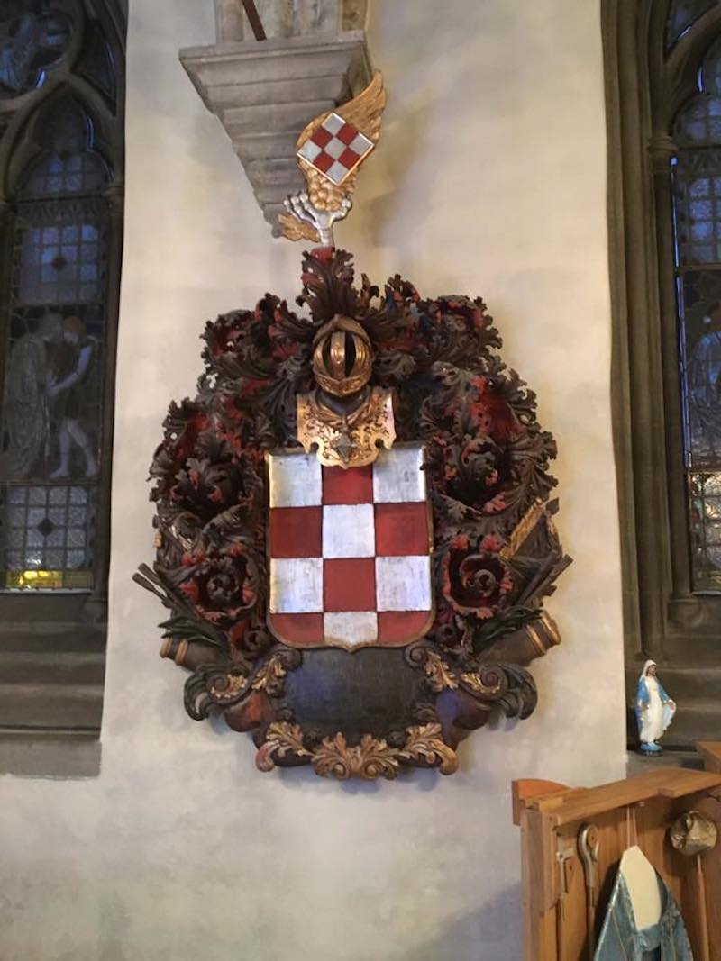 The presence of very beautiful Croatian Coats of Arms in the Cathedral of St Vitus in Hradčani, Prague, Czechia, is related to the fact that Rudloph II was the then King of Croatia (among other countries).